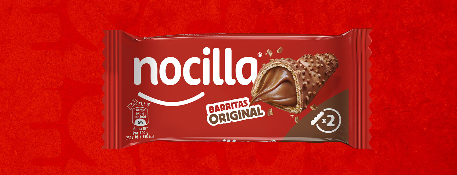 Crujiente oblea rellana de cremosa Nocilla y con una cobertura de leche y cacao.