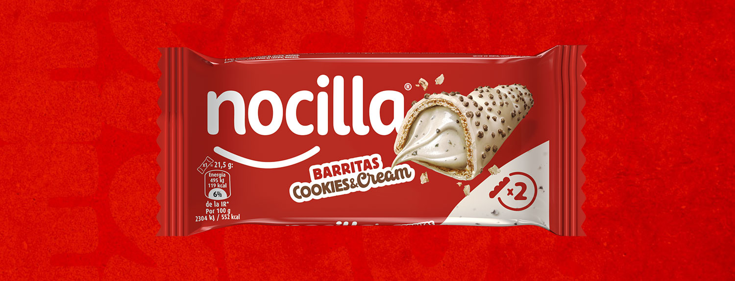 Crujiente oblea rellana de cremosa Nocilla Cookies&Cream y con una cobertura de leche.