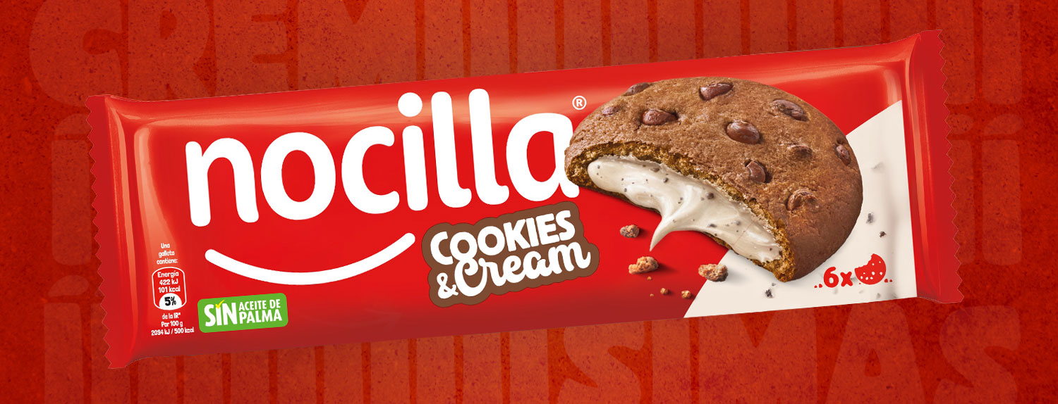 Nuevas Cookies elaboradas con masa de cacao y rellenas de cremosa Nocilla, y sin aceite de palma, como el resto de los productos de la gama Nocilla.